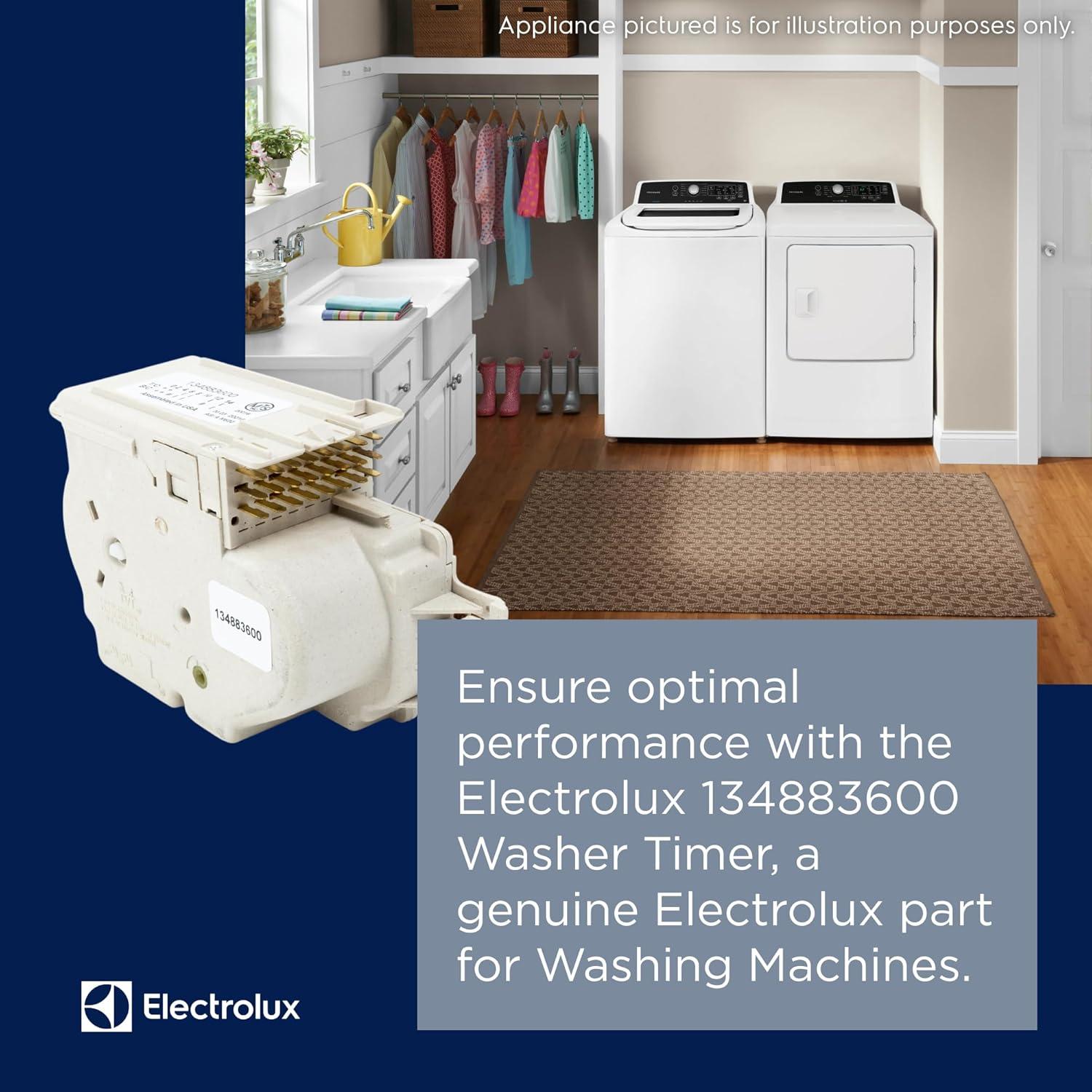 Repair your appliance with this genuine Electrolux 134883600 Washer Timer. Genuine Electrolux parts are engineered to exact specifications, which, unlike non-genuine parts, ensures optimal performance of your appliance. Verify compatibility with your specific model before purchasing. This package weighs 0.88 lbs and measures 7.09 x 5.31 x 4.72 inches. This genuine Electrolux product is compatible with the following Electrolux models: CTW100F, FEX831F, FGX831F, FWS933F, SWS833H, WSM27TH, WWS833F, CLCE500F, CLCG500F, SWXG831H, WSM2700H, WSM2702D, WSM2780H, WSM2782W, WWTW3000K, WSM2702DWV