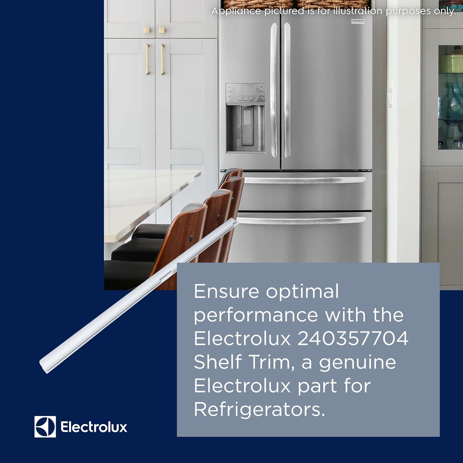 Repair your appliance with this genuine Electrolux 240357704 Shelf Trim. Genuine Electrolux parts are engineered to exact specifications, which, unlike non-genuine parts, ensures optimal performance of your appliance. Verify compatibility with your specific model before purchasing. This package weighs 0.16 lbs and measures 28 x 8 x 0.39 inches. This genuine Electrolux product is compatible with the following Electrolux models: CRT182N, CRT182Q, CRT182S, CRT182N, CRT182Q, CRT182S, FRT8G6F, FRT8G7H, FRT8G8H, WRT1G3E, WRT8G3E, 2536189, CRTE182T, CRTE183A, CRTE206T, CRT182HN, CRT182HQ, CRT182IP, CRT182IQ, DRTE801B, DRT1801B, FFTR2021, FRT18G2N, FRT18G2P, FRT18G3A, FRT18G4A, FRT18G5A, FRT18G5F, FRT18G6J, FRT18G6P, FRT18G7C, FRT18L4F, FRT18L4J, FRT21G3A, FRT21G3C, FRT21G3H, FRT21G3N, FRT21G4B, FRT21G5J, FRT21R2J, FRT8G6FM, GRT21G3C, GRT21G6A, WRT18G4A, CRTEH182T, CRTE183IA, CRT184SBM, C970-6982, ERFG21XAM, FFHI1817L, FFHI2117L, FFHT1800P, FFHT1816L, FFHT1816P, FFHT1817L, FFHT1817P, FFHT1821Q, FFHT1821T, FFHT2021Q, FFHT2021T, FFHT2116L, FFHT2117L, FFHT2117P, FFTI2117L, FFTR18G2Q, FFTR1817L, FFTR1820S, FFTR1821Q, FFTR1821T, FFTR20G2Q, FFTR2021Q, FFTR2021T, FRT18FG3D, FRT18FG4D, FRT18IG4A, FRT18KG3C, FRT18KG3D, FRT18KG4C, FRT18KG4D, FRT21FG3C, FRT21FG3D, FRT21FG4C, FRT21FG4D, FRT21IG3D, FRT21IL4F, FRT21KG3C, FRT21KG3D, FRT21KG3E, FRT21KG4C, FRT21KG4D, FRT21KG4E, FTHD18P4K, FTMD18P4K, FTMD18P4R, FTMD18P4T, FTMI21P5K, GRTG20V4A, GRTG20V4C, KATR1816M, KATR1816P, KRTG20V4A, KRTG20V4C, KRTG20V4F, LFHT1817L, LFHT2117L, LFHT2117N, LFTR1821T, LFTR2021T, MRTG23V7P, MRTG23V7R, PRTG20V4A, PRTG20V4C, SPHT2117M, WRT21MG3A, WWTR1821Q, WWTR1821T