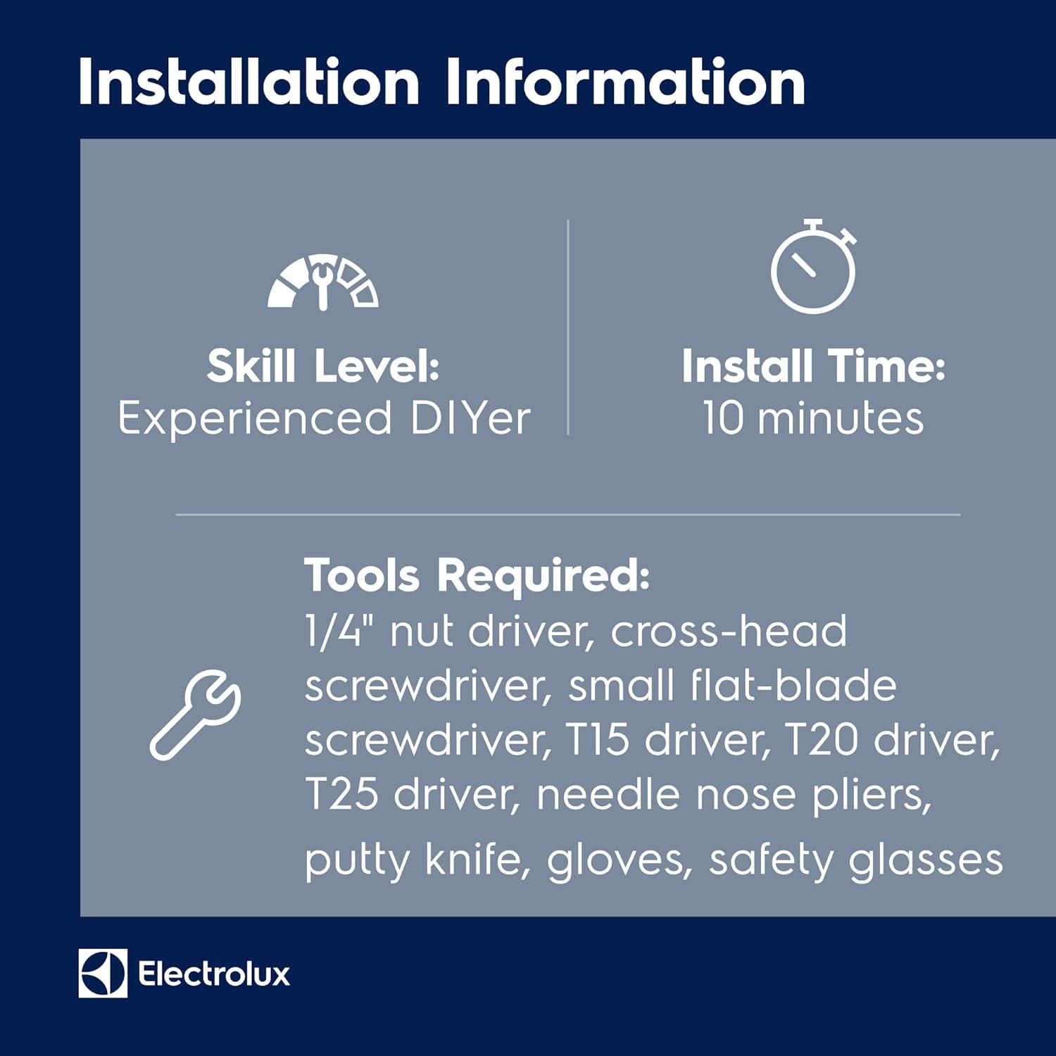 Tools Required: To install this item, you'll need the following: 1/4″ nut driver, cross-head screwdriver, small flat-blade screwdriver, T15 driver, T20 driver, T25 driver, needle nose pliers, putty knife, gloves, safety glasses