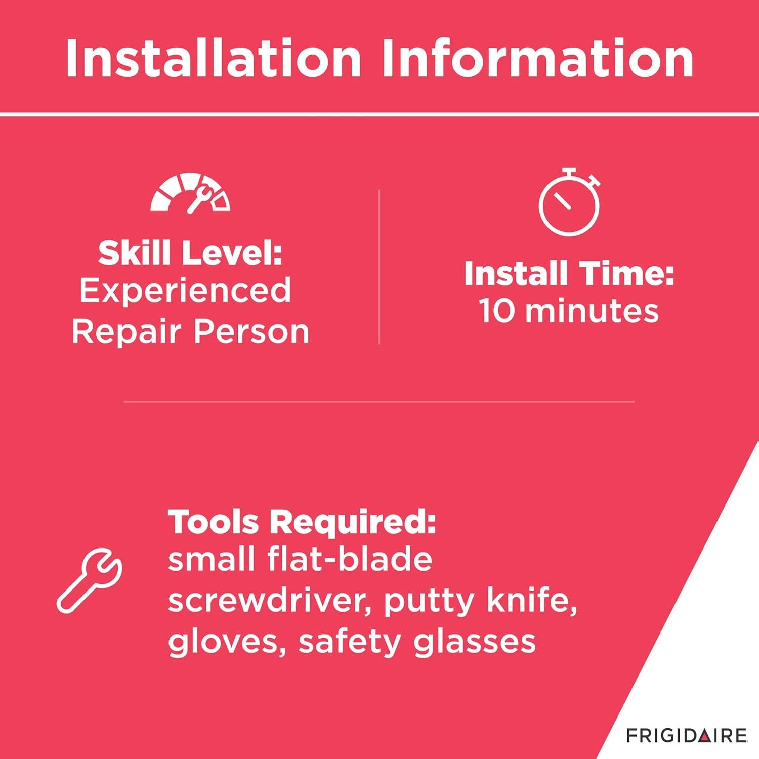 Tools Required: To install this item, you'll need the following: small flat-blade screwdriver, putty knife, gloves, safety glasses
