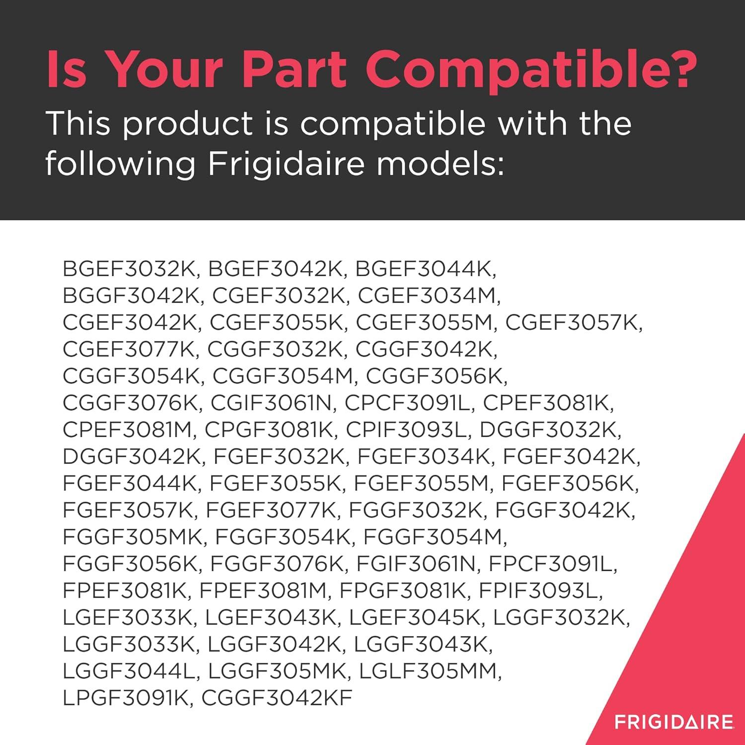 Repair your appliance with this genuine Frigidaire 316546300 Oven Rack Link Arm. Genuine Frigidaire parts are engineered to exact specifications, which, unlike non-genuine parts, ensures optimal performance of your appliance. Verify compatibility with your specific model before purchasing. This package weighs 0.09 lbs and measures 19.2 x 5.1 x 0.6 inches. This genuine Frigidaire product is compatible with the following Frigidaire models: BGEF3032K, BGEF3042K, BGEF3044K, BGGF3042K, CGEF3032K, CGEF3034M, CGEF3042K, CGEF3055K, CGEF3055M, CGEF3057K, CGEF3077K, CGGF3032K, CGGF3042K, CGGF3054K, CGGF3054M, CGGF3056K, CGGF3076K, CGIF3061N, CPCF3091L, CPEF3081K, CPEF3081M, CPGF3081K, CPIF3093L, DGGF3032K, DGGF3042K, FGEF3032K, FGEF3034K, FGEF3042K, FGEF3044K, FGEF3055K, FGEF3055M, FGEF3056K, FGEF3057K, FGEF3077K, FGGF3032K, FGGF3042K, FGGF305MK, FGGF3054K, FGGF3054M, FGGF3056K, FGGF3076K, FGIF3061N, FPCF3091L, FPEF3081K, FPEF3081M, FPGF3081K, FPIF3093L, LGEF3033K, LGEF3043K, LGEF3045K, LGGF3032K, LGGF3033K, LGGF3042K, LGGF3043K, LGGF3044L, LGGF305MK, LGLF305MM, LPGF3091K, CGGF3042KF