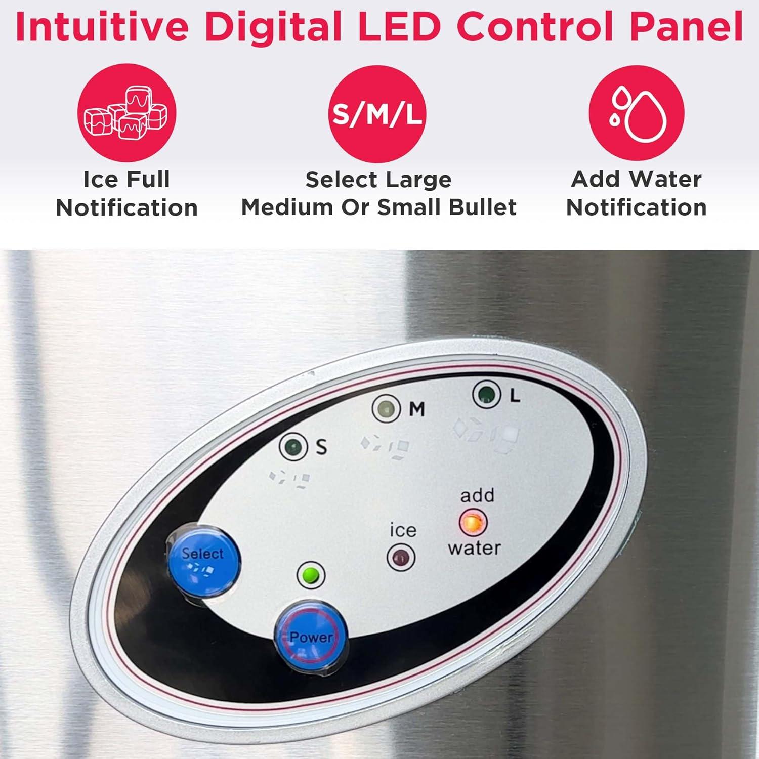 Intuitive Control – The ice maker features a transparent window so you can easily monitor ice levels and see when ice is being made. Take full control with the digital LED control panel, allowing easy adjustment of settings and ice size selection for ultimate convenience.
