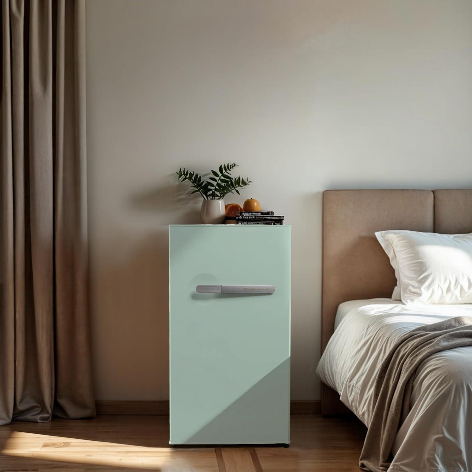 Modern Aesthetic: Elevate your space with this sleek and stylish small fridge. The eye-catching design infuses a modern sleekness into any room. The compact refrigerator’s size and Stylish Design make it a great addition to your bedroom, office, or dorm room.
