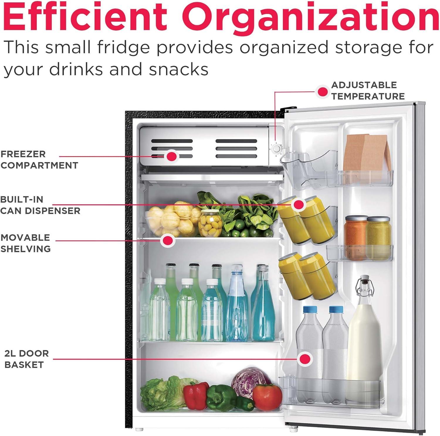 Modern Aesthetic: Elevate your space with this sleek and stylish small fridge. The eye-catching design infuses a modern sleekness into any room. The compact refrigerator’s size and Stylish Design make it a great addition to your bedroom, office, or dorm room.