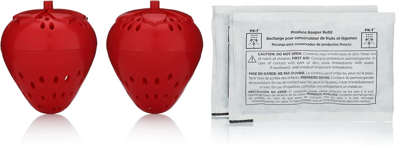 Extend the life of fruits and vegetables with PureFresh Refillable Fruit and Veggie Saver™. Our refillable produce savers absorb ethylene gas from fruits and vegetables, the natural gas that causes produce to ripen quicker. Includes 2 refillable produce savers, each lasts up to 6 months. Place in your crisper drawers or storage bins and enjoy fresh tasting produce with a longer storage life. Refill every 6 months. For refills, purchase PK-1™.